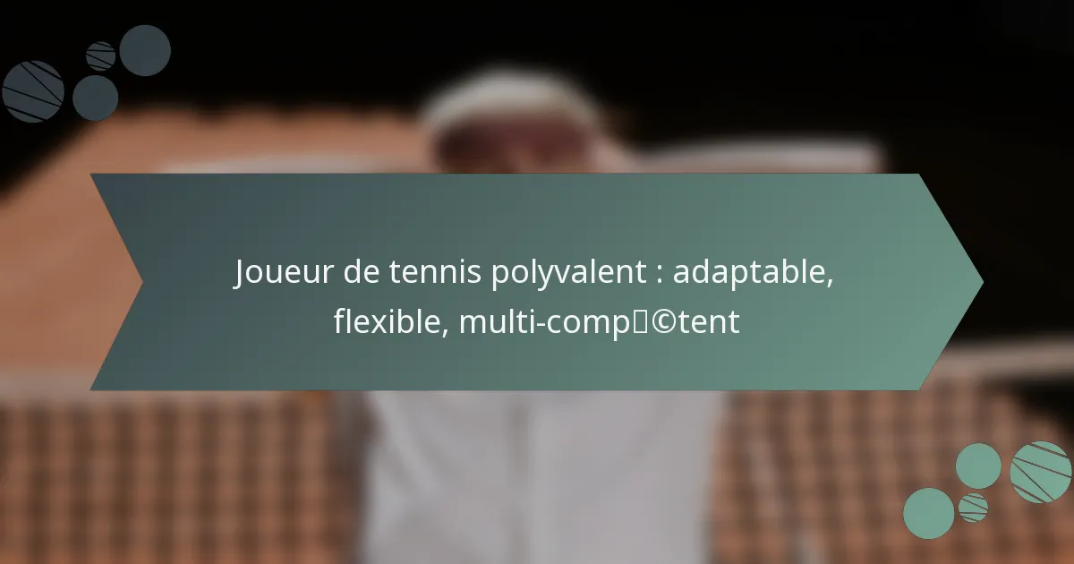 Un joueur de tennis polyvalent possède une gamme de compétences qui lui permettent de s’adapter à diverses situations de match. Les compétences clés incluent une sélection de coups variée, une pensée stratégique, une condition physique, une résilience émotionnelle et la capacité de lire efficacement ses adversaires. Maîtriser ces domaines améliore l’adaptabilité d’un joueur sur le court.